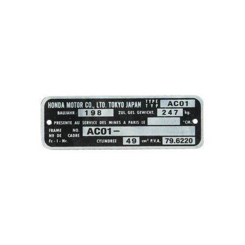 Aanbevolen onderdelen: plaatje framenummer ac01 honda mb5